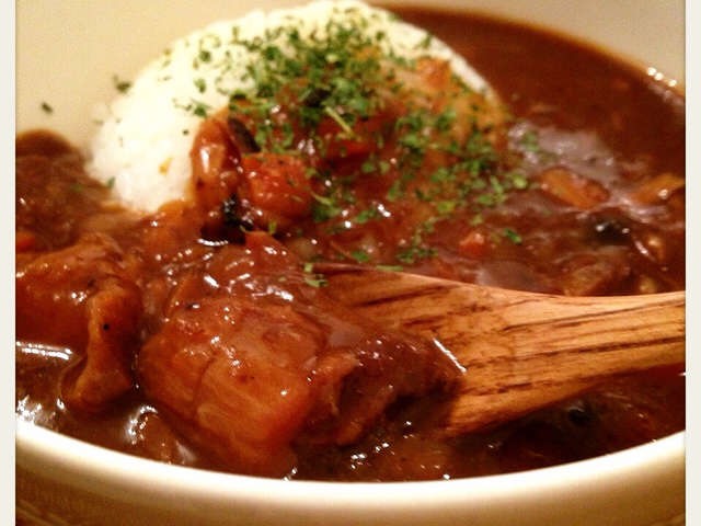 スパイスが効いたシェフ自慢のカレーソースに黒毛和牛「佐賀牛」を加え、美味しく仕上げました、是非ご賞味ください